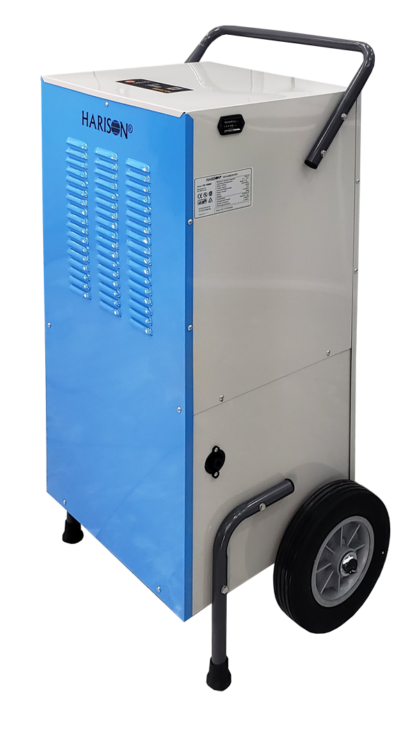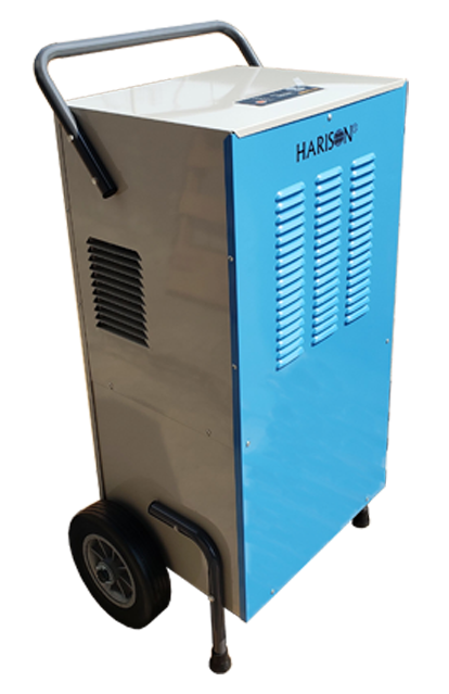 Máy hút ẩm di động công suất trung bình đặt trong phòng, có thể di động, sử dụng nguồn điện 1 pha, có thể xả nước trực tiếp qua ống xả.